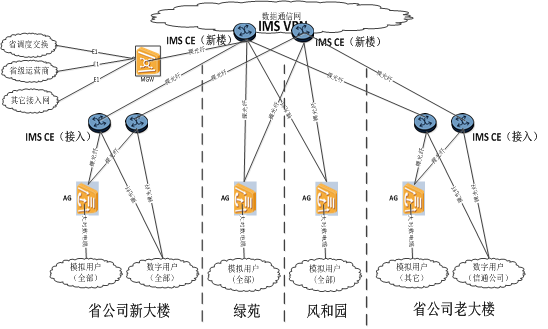 Ø 在綠苑、風(fēng)和園的弱電機(jī)房新配置接入網(wǎng)關(guān)AG,通過(guò)裸光纖遠(yuǎn)傳接入省公司的IMS平臺(tái)。